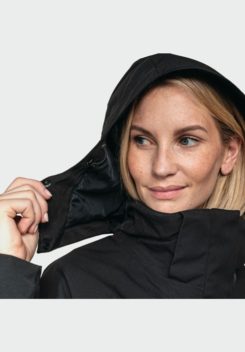 Regulējama kapuce un aproces.