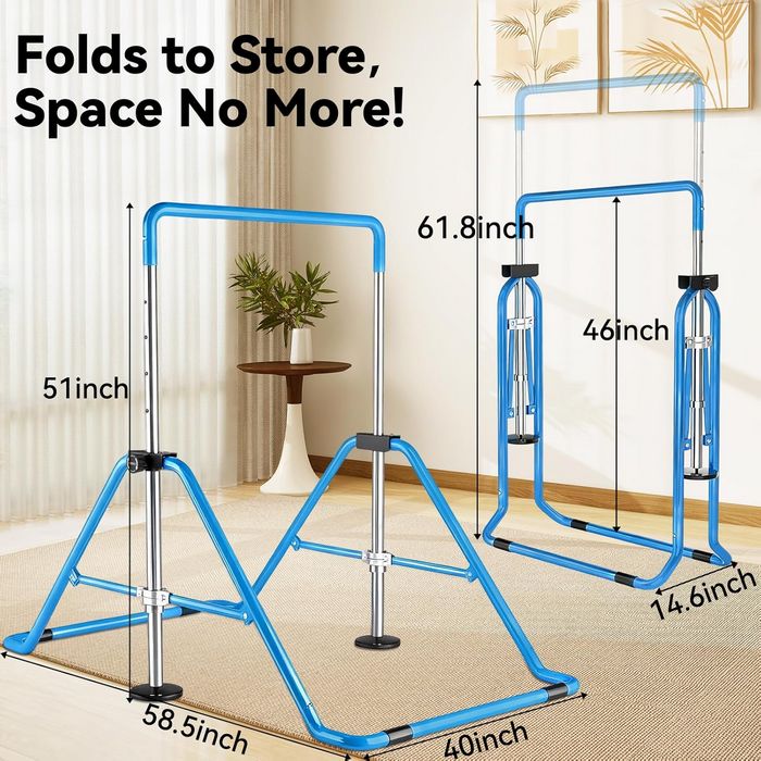 Šim salokāmajam bērnu vingrošanas stienim ir trīsstūrveida dizains, kas nodrošina stabilitāti un drošību.