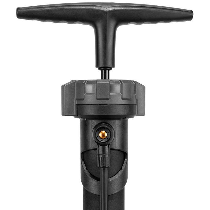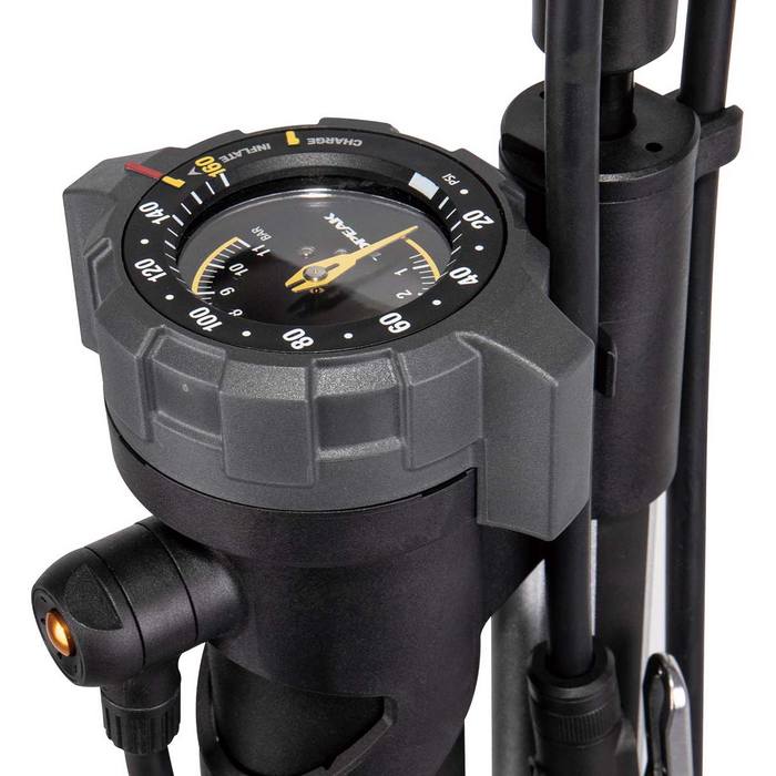 Augšējā montāžas viegli nolasāmais spiediena mērītājs, gaisa atbrīvošanas poga un ērtais divu blīvumu polimēra rokturis, apvienojumā ar ļoti garo šļūteni un stabilu pamatni, padara bezkameru un standarta riepu uzlikšanu vienkāršu!